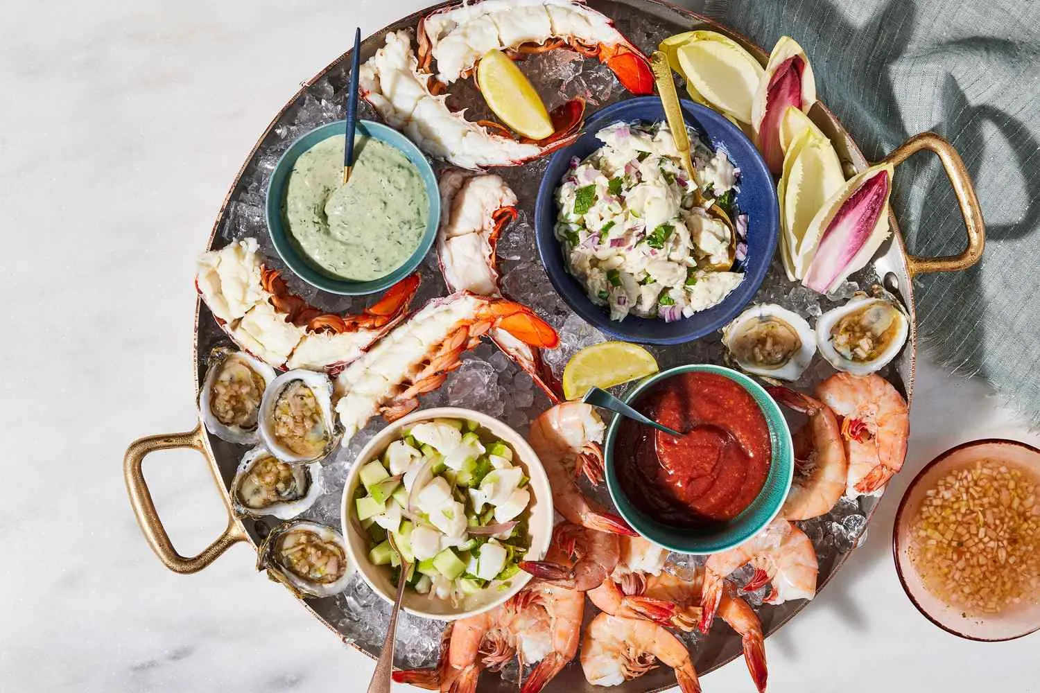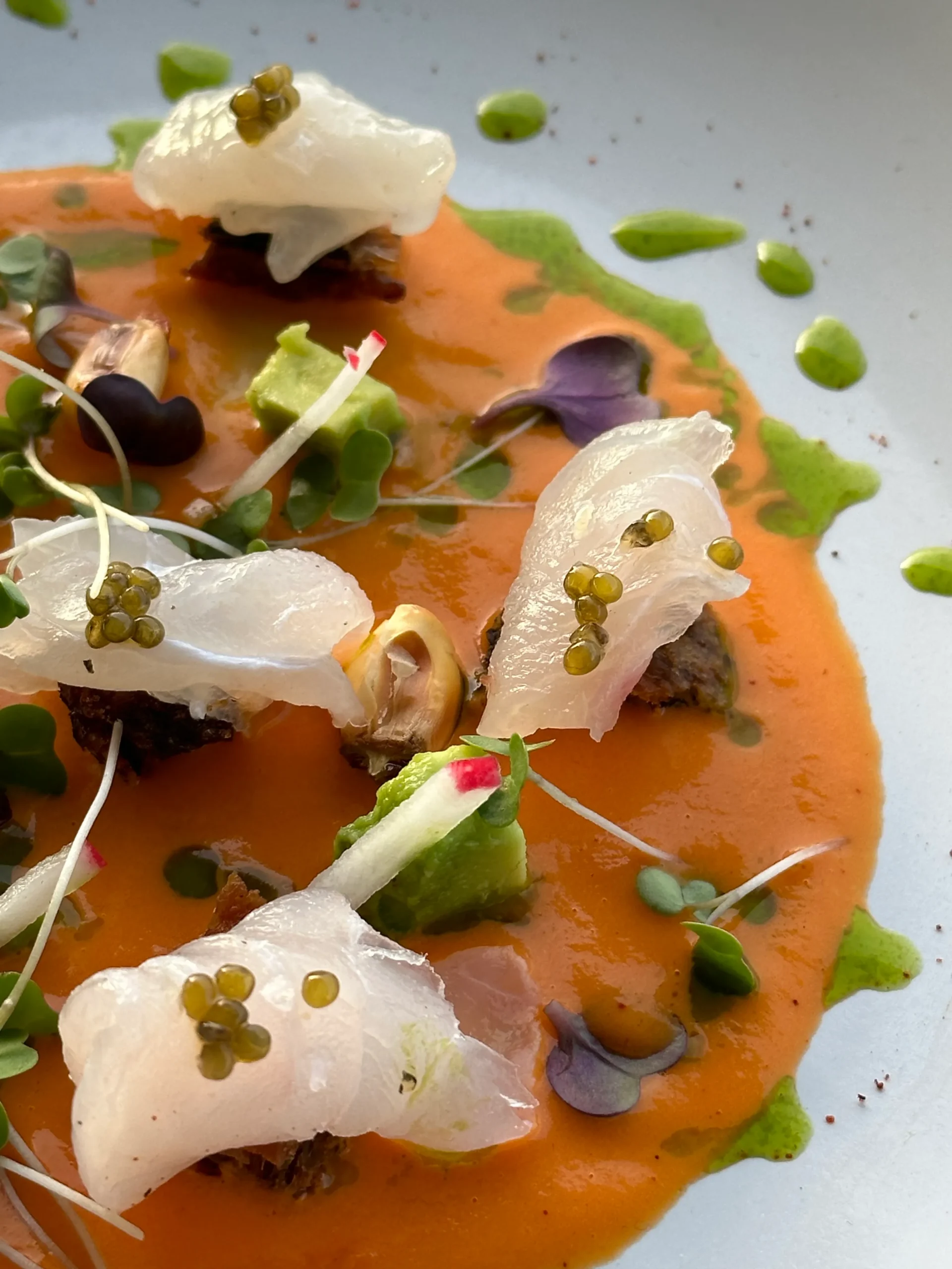 - Fresh seafood including sashimi shots, ceviche, and barracuda
